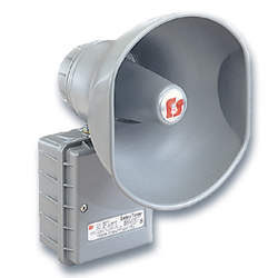 The rugged speaker cone and projector are constructed of spun aluminum. The internal circuitry, tone module, and gain control are contained in a housing constructed of die-cast aluminum. All surfaces are sealed with powder-coat paint. Dust- and moisture-proof gaskets provide protection from the elements.