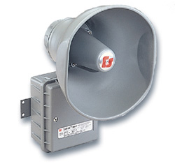 The rugged speaker cone and projector are constructed of spun aluminum. The amplification circuitry, tone module, and gain control are contained in a housing constructed of die-cast aluminum. All surfaces are sealed with powder-coat paint. Dust- and moisture-proof gaskets provide protection from the elements.