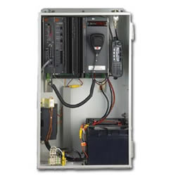 The UVIC is housed in a single Type 1 style cabinet, with provisions for up to two 400 Watt amplifiers (sold separately). Each controller requires 120VAC and contains two sealed lead-acid batteries, providing over 30 minutes of operation in the event power has been lost.