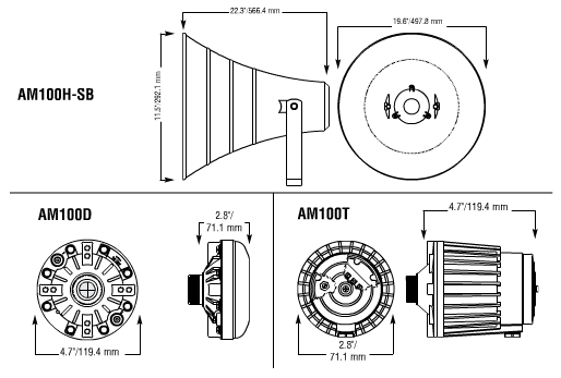 AM100H-SB, AM100D, AM100T AudioMaster® 100 Watt High-Powered Driver/Horn