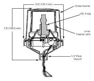 The Model 225XL has been certified by UL as meeting Type 4X watertight and corrosion-resistant requirements, and is rated for Division 2 applications. This hazardous location warning light has a black polyurethane-coated base and the inner Fresnel lens is available in five colors - amber, blue, clear, green and red. The clear polycarbonate outer dome can be quickly removed for access while changing the lamp or inspecting the unit.
